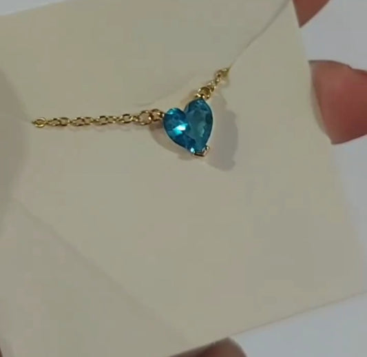 Gold Crystal marine blue heart necklace