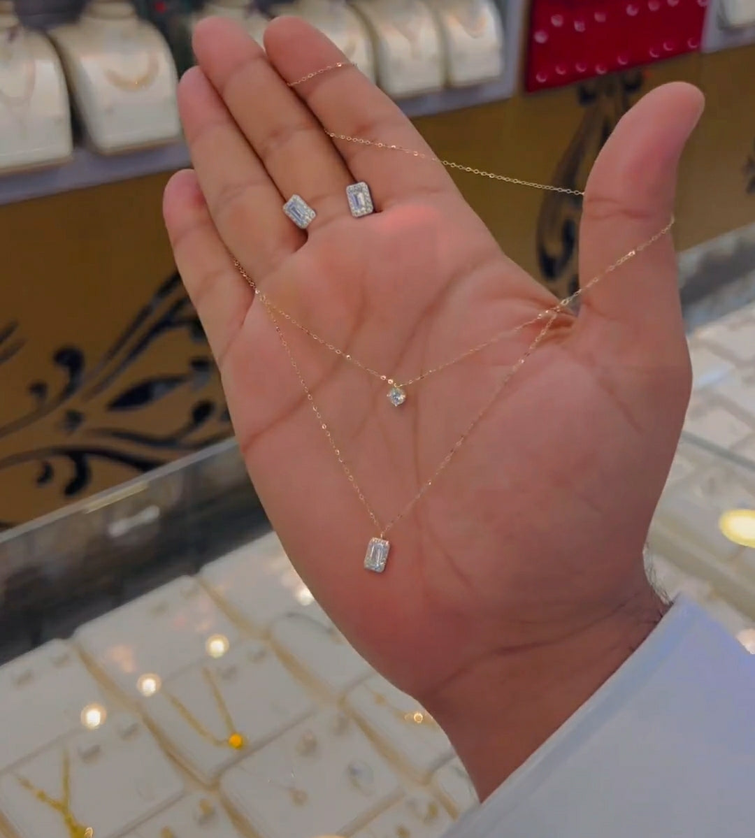What you get : 1 pair earrings + 1 2 layered necklace.