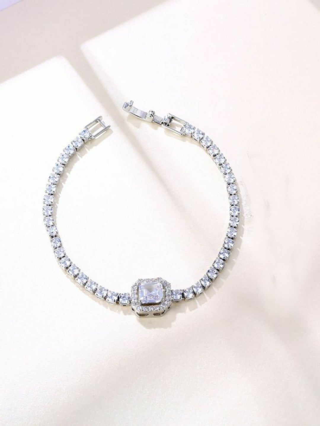 Sleek and elegant, the CEO Square Tennis Bracelet features a unique square design. Made with high-quality silver, this bracelet adds a touch of sophistication to any outfit. Elevate your style with this modern twist on the classic tennis bracelet.