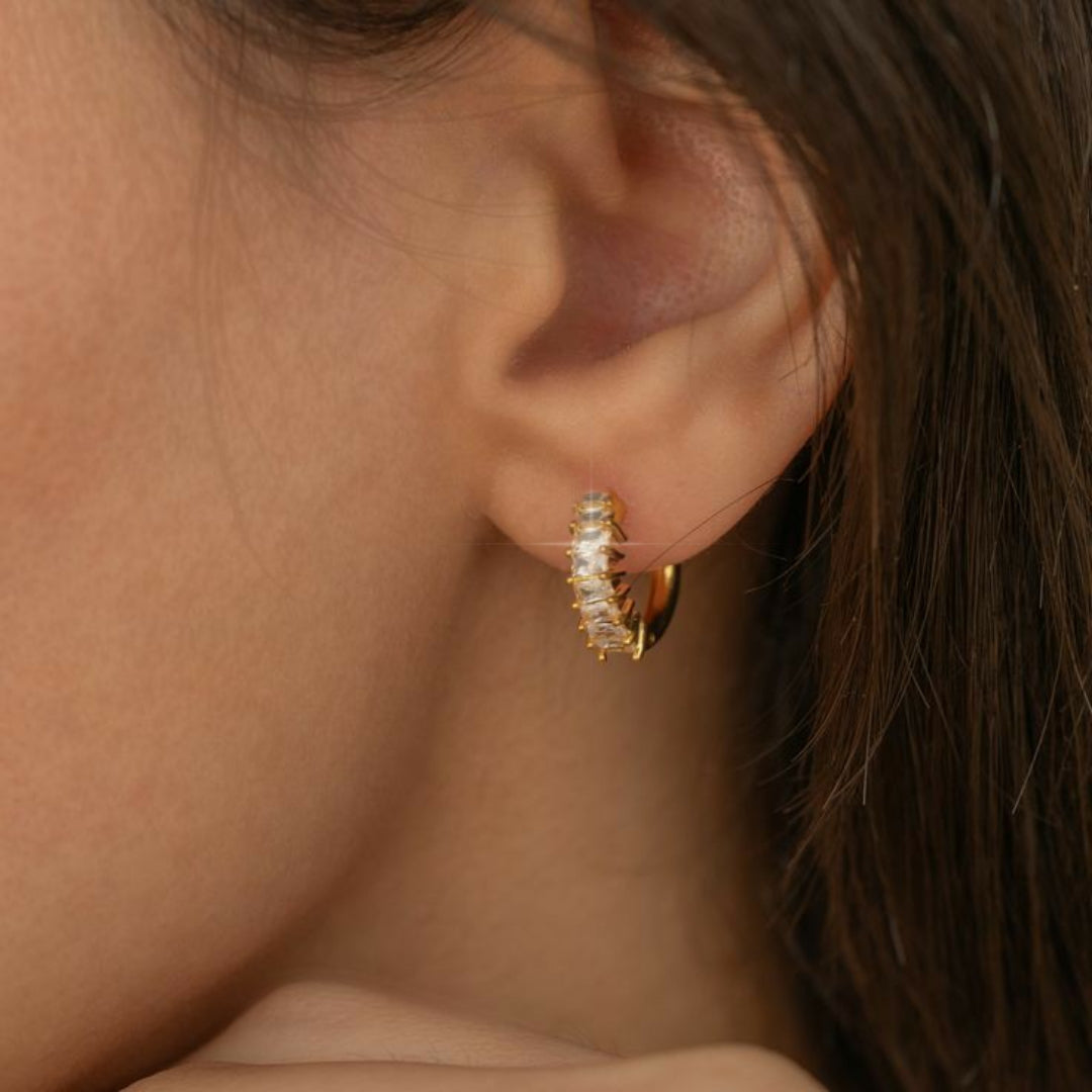 These trendy crystal gold hoops are a must-have accessory. The intricate design and high-quality materials make them not only stylish but also durable. Elevate any outfit with these pretty and elegant earrings. Perfect for any occasion, these hoops are sure to make a statement.
