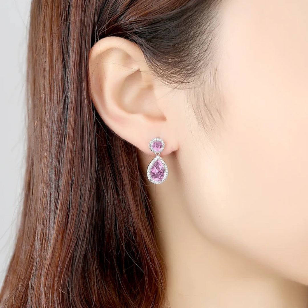 Classy pink drop crystal earrings will add a touch of sophistication to any look. Made from genuine crystals, they will sparkle in any light. The perfect gift for anyone who loves pink.