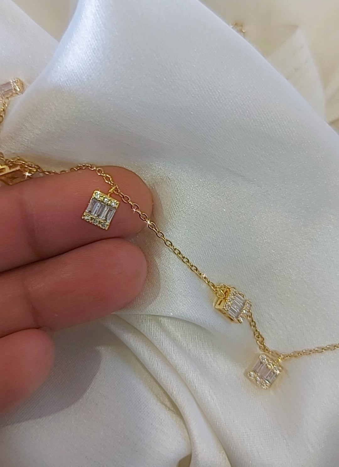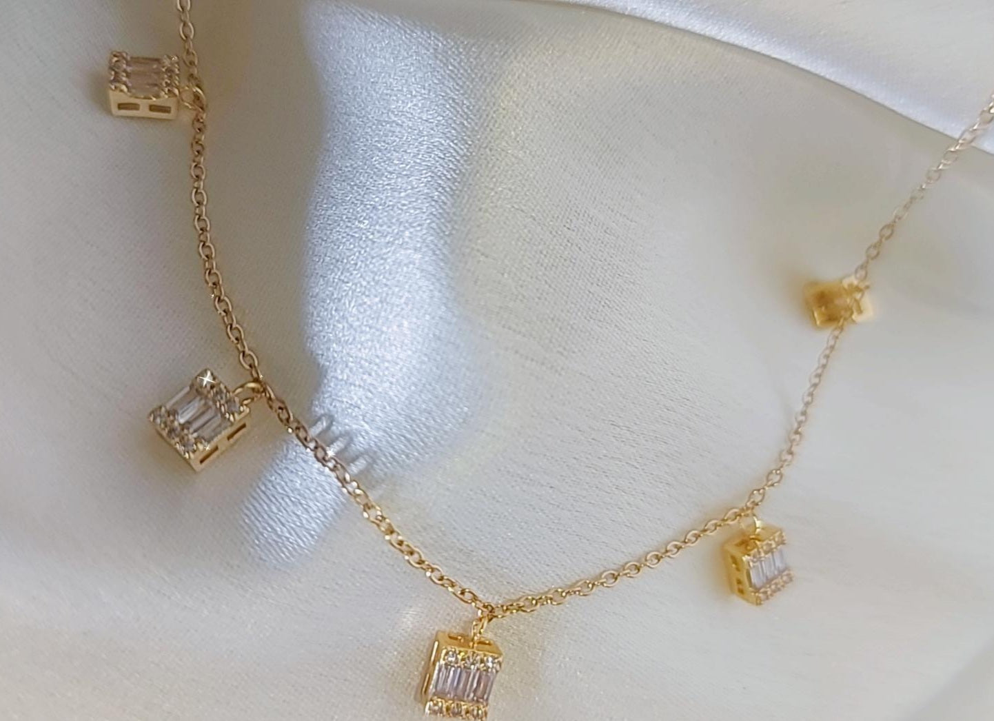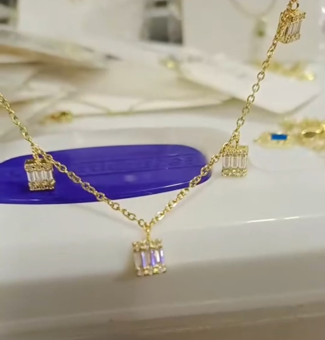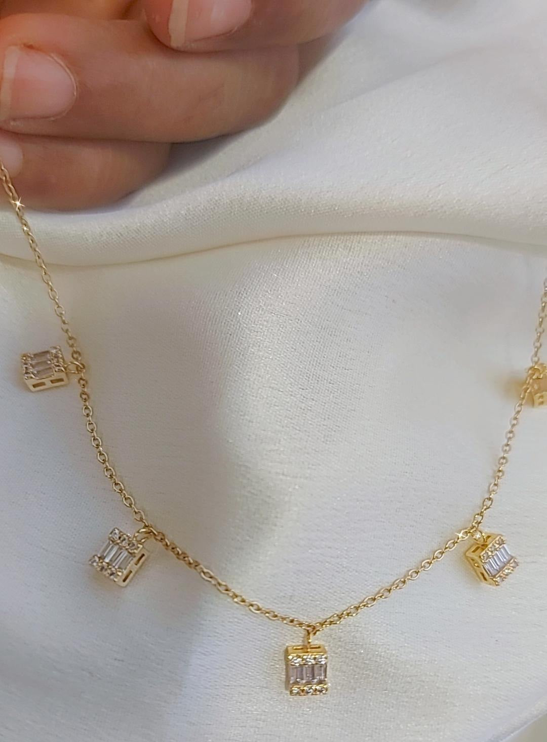 This elegant lux square necklace set in gold features a stunning necklace Perfect for adding a touch of glamour to any outfit. Handcrafted with attention to detail, this set is sure to elevate your style. A must-have for any fashion-forward individual.