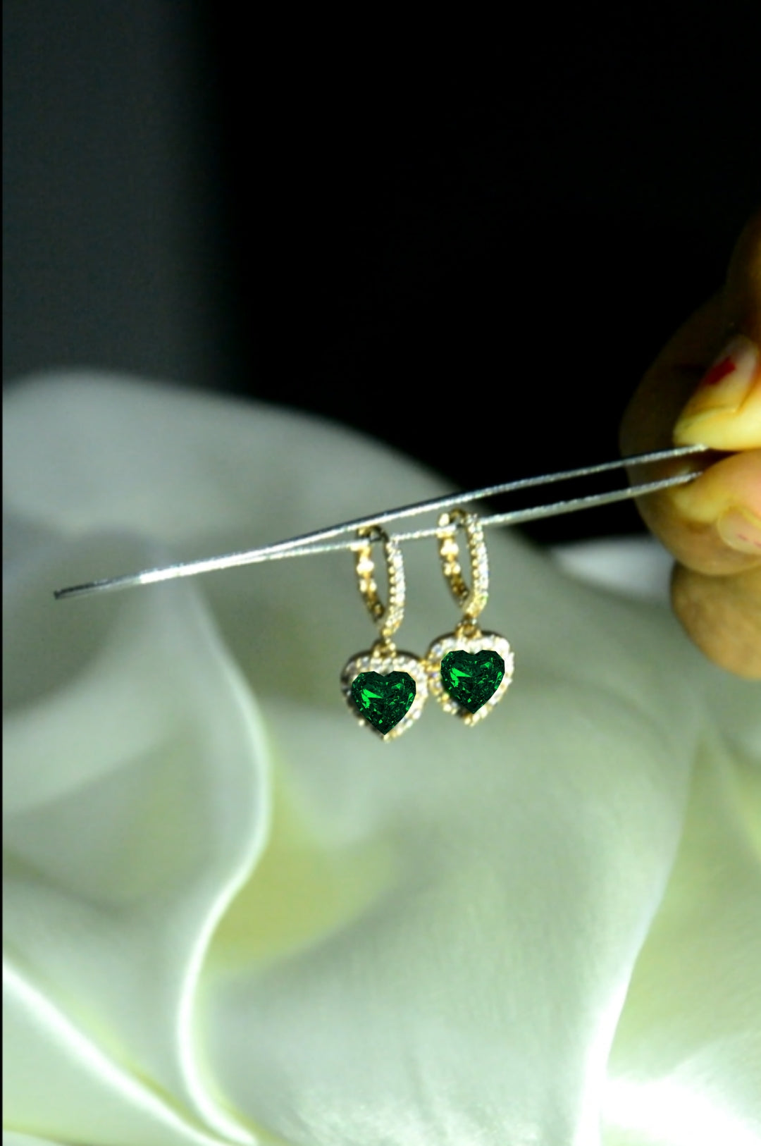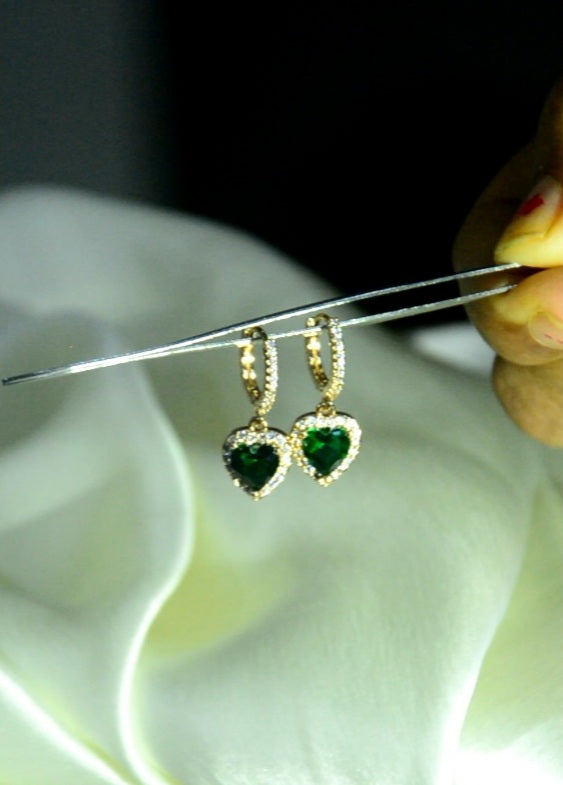 These Gold Emerald heart earrings are the perfect accessory for any wardrobe. Crafted with elegant hearts and emeralds, they are the ideal combination of style and sophistication. With the gold huggies, you can wear them all day, every day.