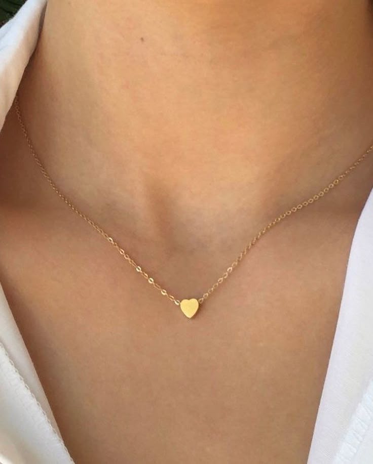 This elegant gold heart necklace is perfect for any occasion. Its simple, understated design adds a touch of sophistication to any outfit. Crafted with high-quality materials, this necklace is both durable and stylish. Its timeless appeal makes it a versatile piece that can be worn for years to come.