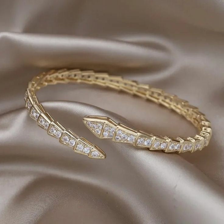 Featuring elegant Serpenti designs adorned with sparkling rhinestones, our Gold Serpenti Bracelet adds a touch of sophistication to any outfit. Expertly crafted and designed for ultimate comfort, this bracelet is the perfect accessory for any fashion-forward individual. Elevate your style with this stunning piece today.