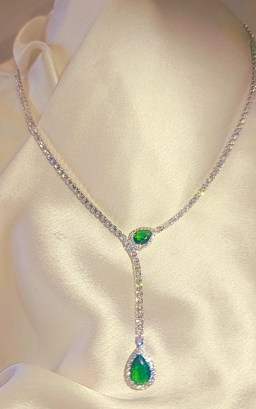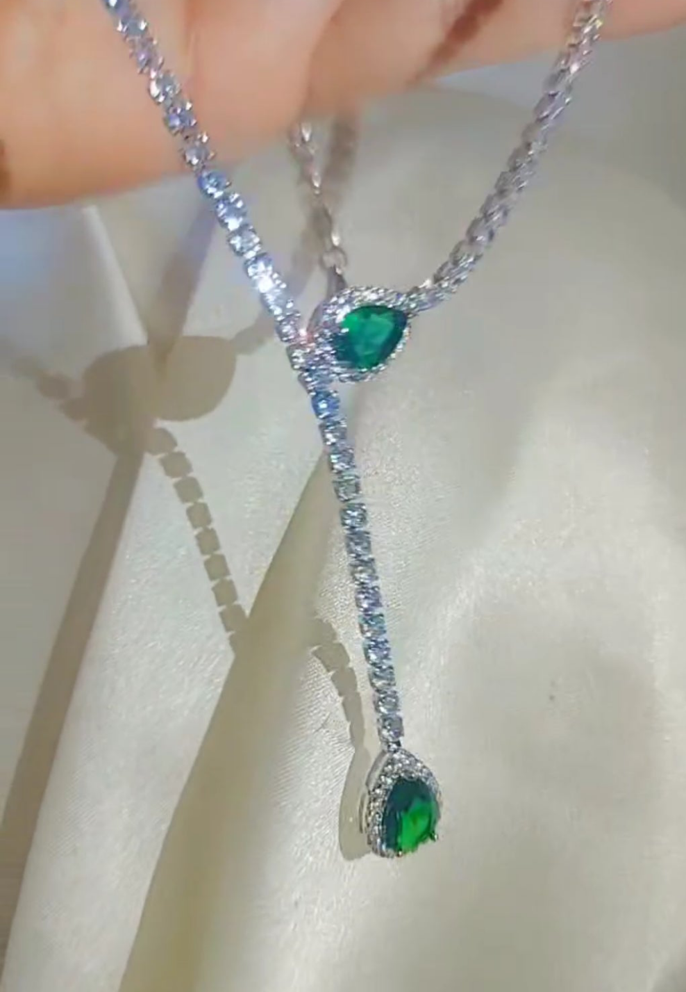Elevate your style with our Luxe Emerald Diamond Necklace. Crafted with a stunning emerald gemstone, this necklace is the perfect accessory for any classy event or special occasion. Experience the elegance and sophistication of our luxurious design, sure to make you stand out in any crowd.