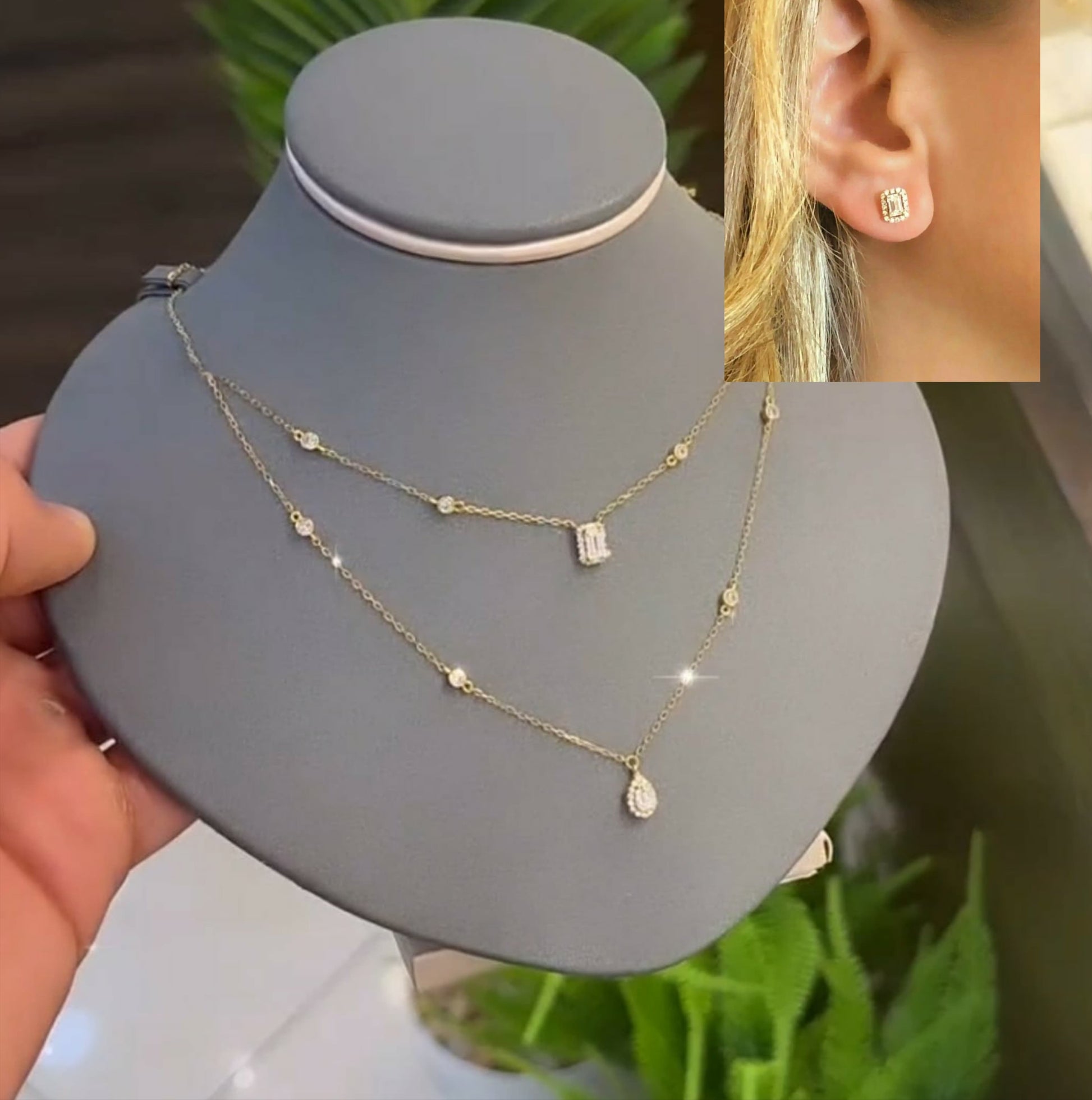 Elevate your evening with our luxurious set. This two-layer, two-style enhanced necklace is perfect for special occasions , festive nights and parties. Bring the wow factor to your outfit with this statement piece.