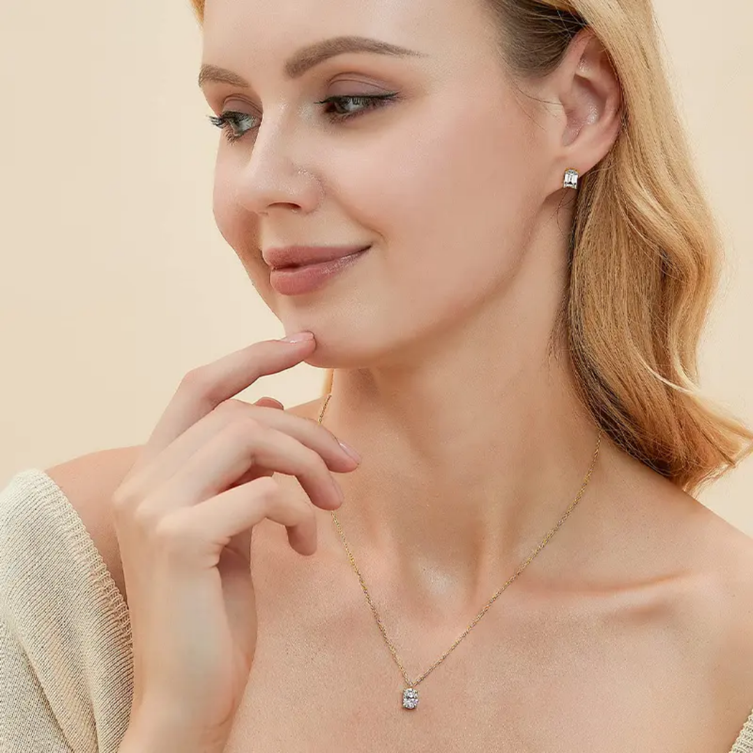This elegant necklace features an oval white stone, exuding sophistication and grace. Made with quality materials and expert craftsmanship, it beautifully complements any outfit. Elevate your style with this timeless and versatile Belle Necklace.