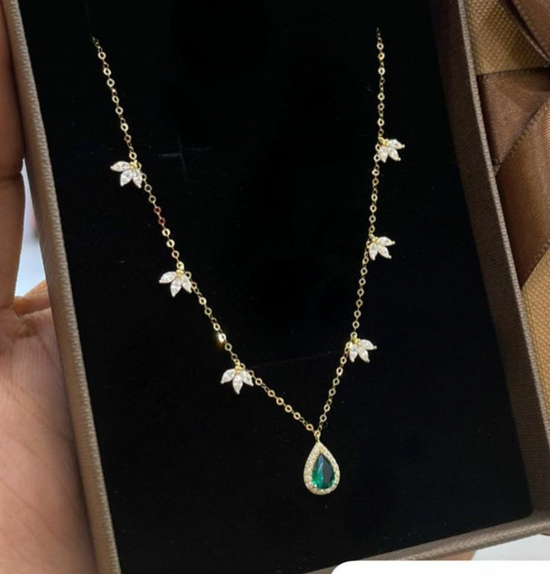 Experience true luxury wearing the Rani Sahiba necklace. Its emerald drop adds a touch of royalty to any outfit. Handcrafted with the highest quality materials, this necklace exudes elegance and sophistication. Make a statement with this exquisite piece and elevate your style to new heights.