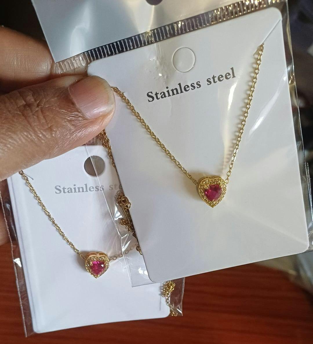 This exquisite necklace features a captivating ruby heart, encircled by sparkling diamonds. Handcrafted with the finest materials, it radiates elegance and beauty. Perfect for any occasion, it's sure to make a statement and capture the heart of anyone who wears it.