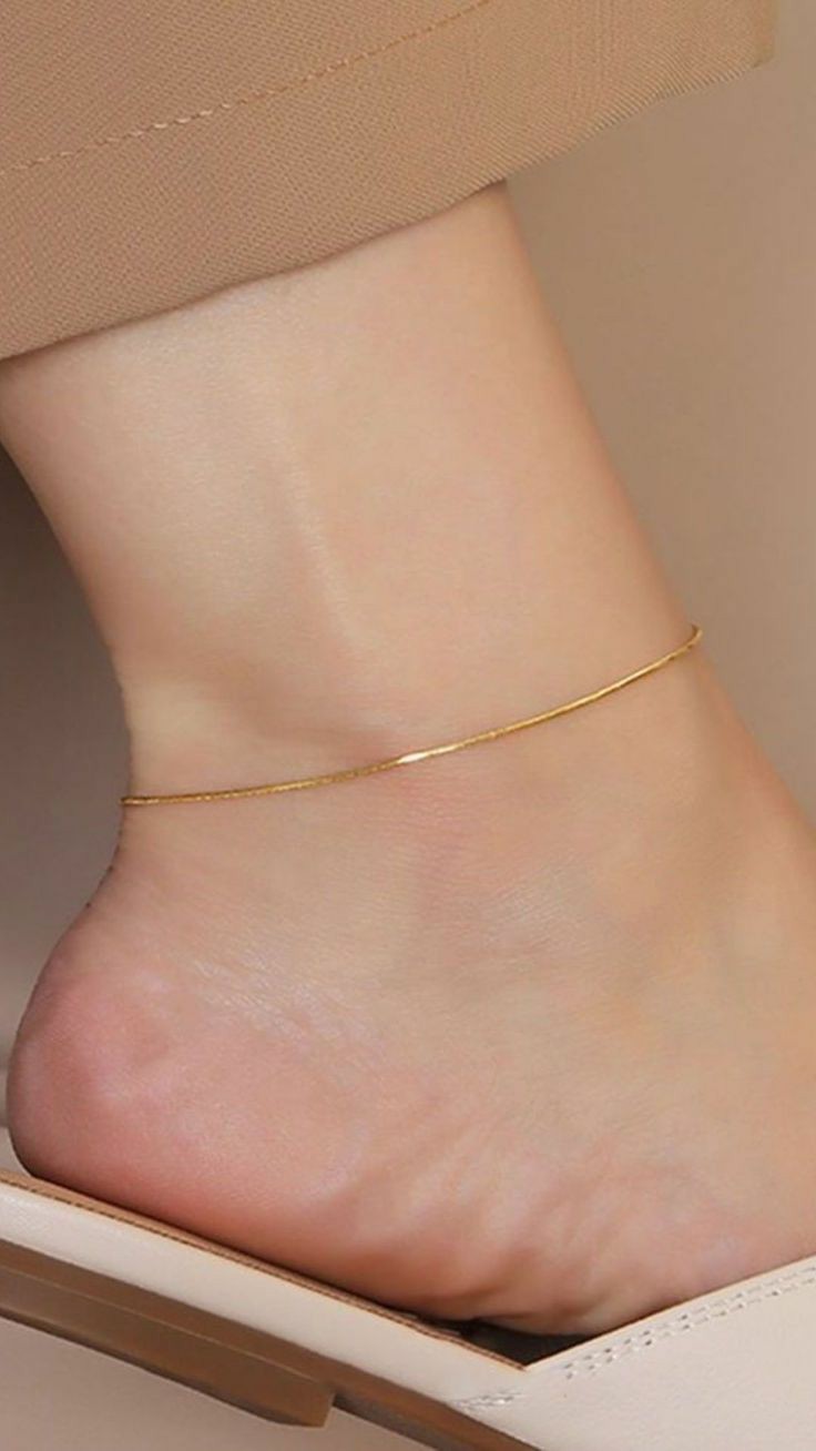 Enhance your style with our Simple Gold Anklet. Made with delicate gold thread, it adds a touch of elegance to any outfit. Perfect for everyday wear or special occasions. Elevate your look with this must-have accessory.