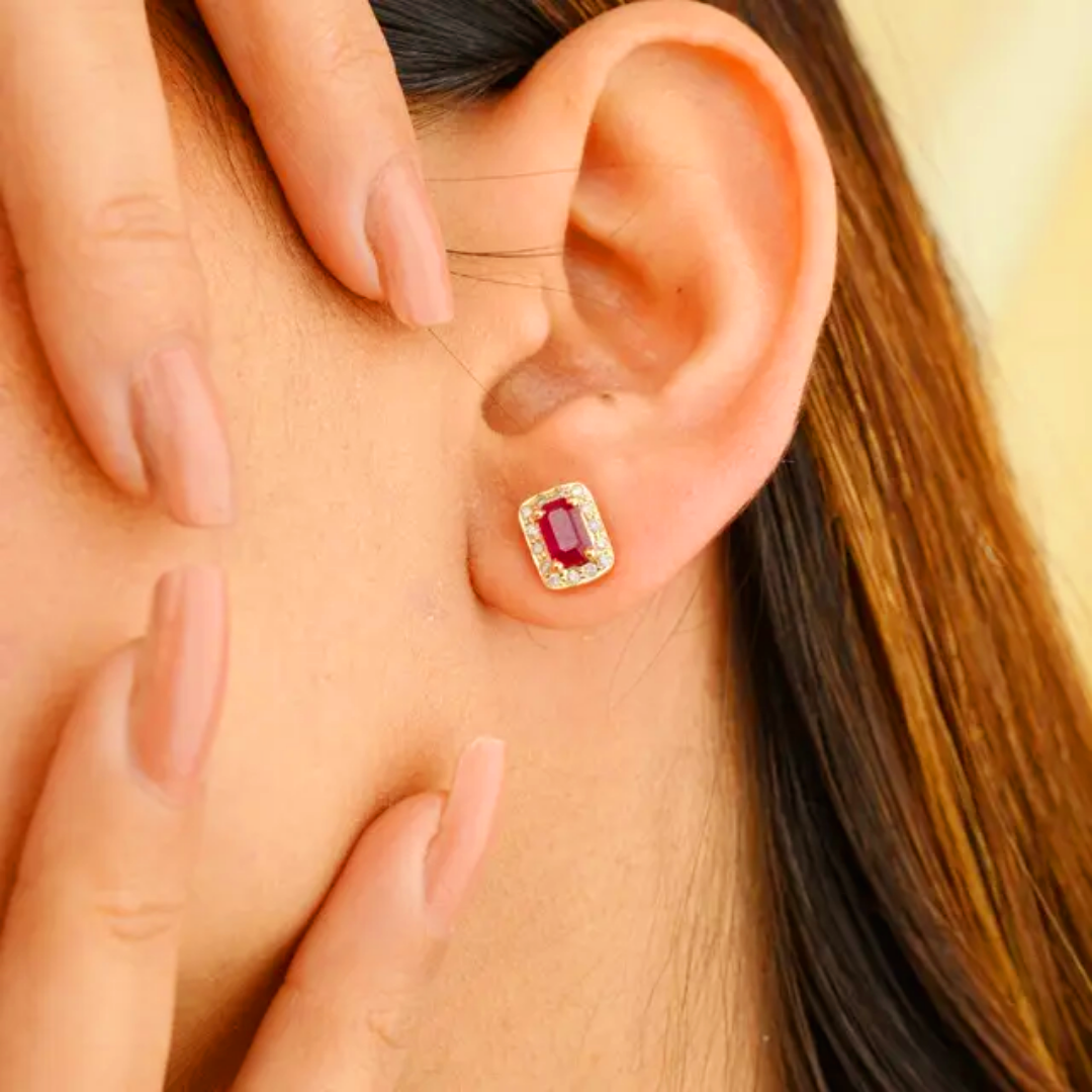Egyption ruby studs is matching for ruby necklace. Ruby stone is very shining and perfect for function nd dates. This stud earrings matching with egyption ruby necklace.