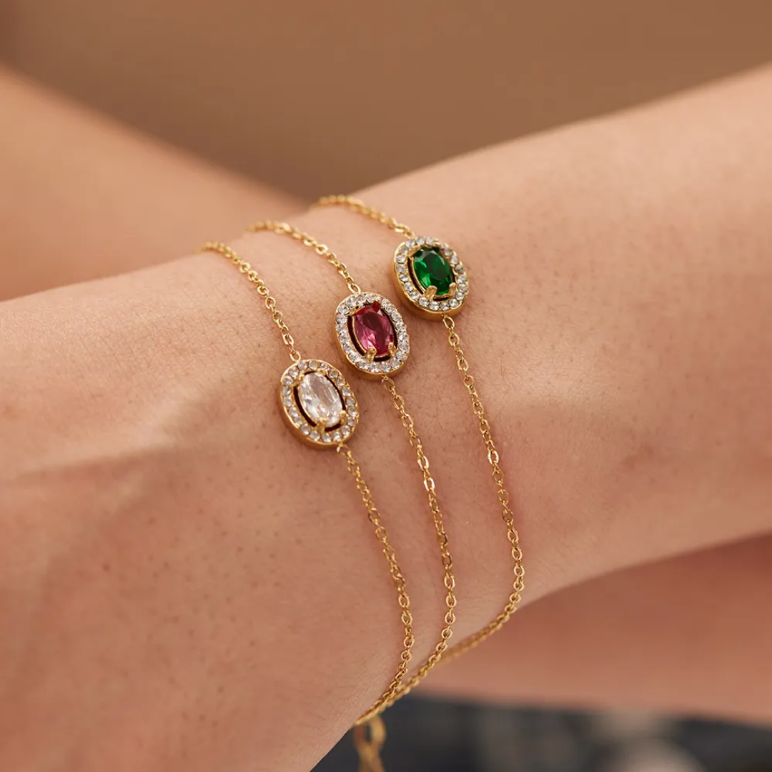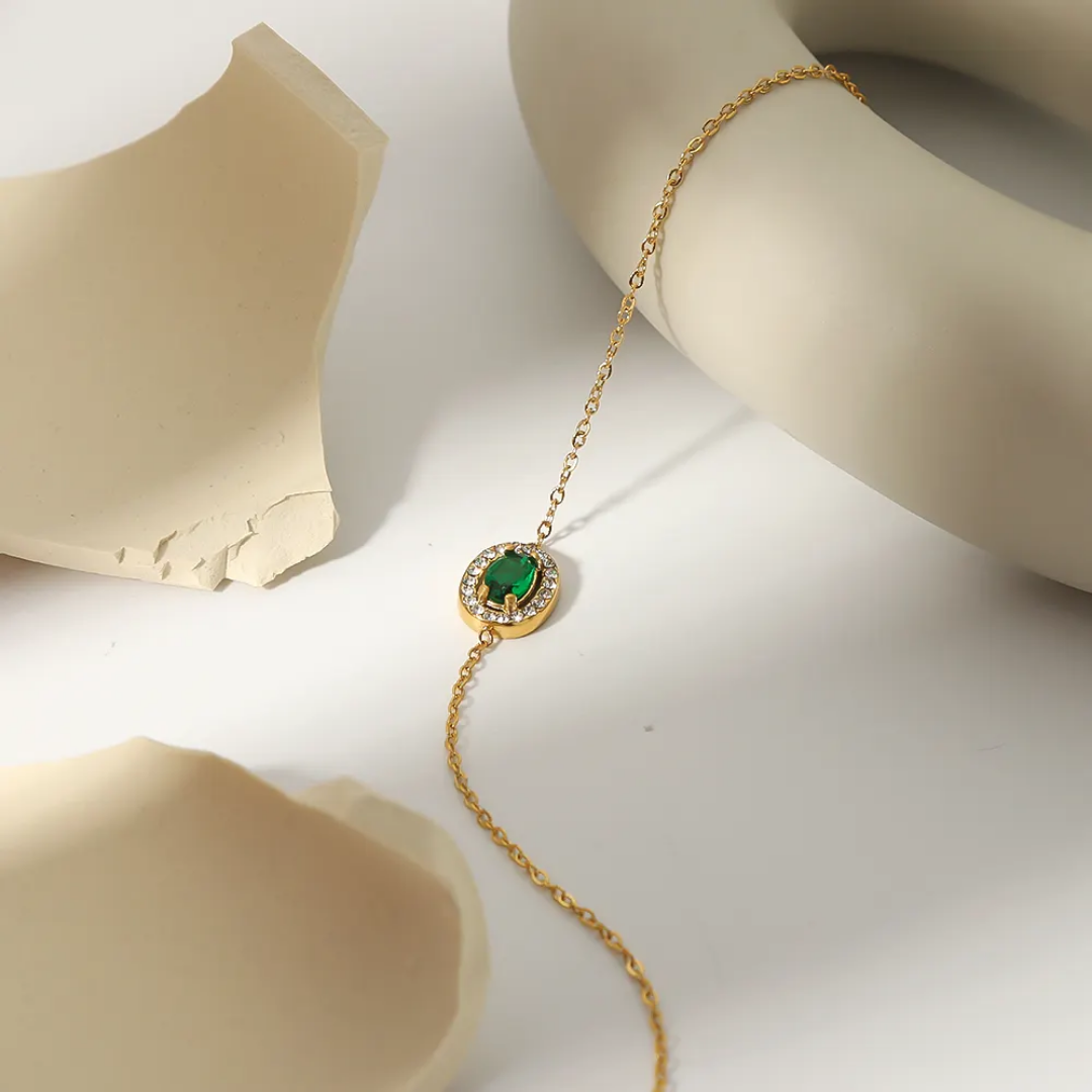 Expertly crafted with an oval design, the Emerald Juliet Bracelet showcases a minimal yet elegant style. Made with emerald stone, this bracelet exudes sophistication and luxury. Elevate any outfit with this stunning piece, perfect for any occasion.