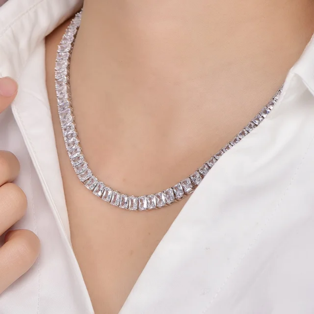 Luxury crystal diamond silver Necklace is an elegant accessory for a timeless look. Crafted with a triangular charm design, this necklace will add a unique touch to any outfit. Its classic design creates a timeless look that will never go out of style.
