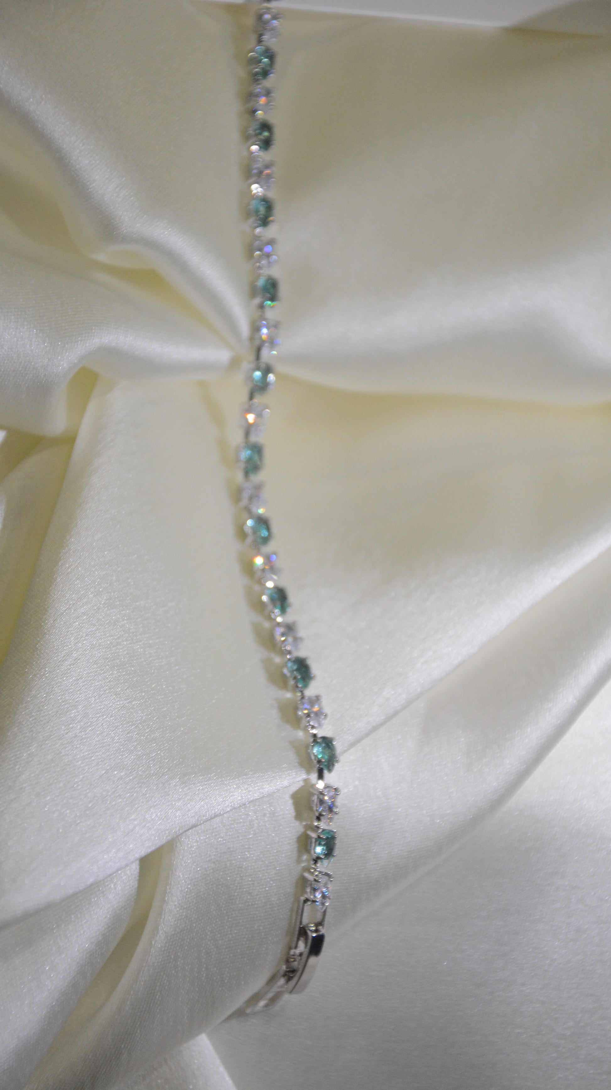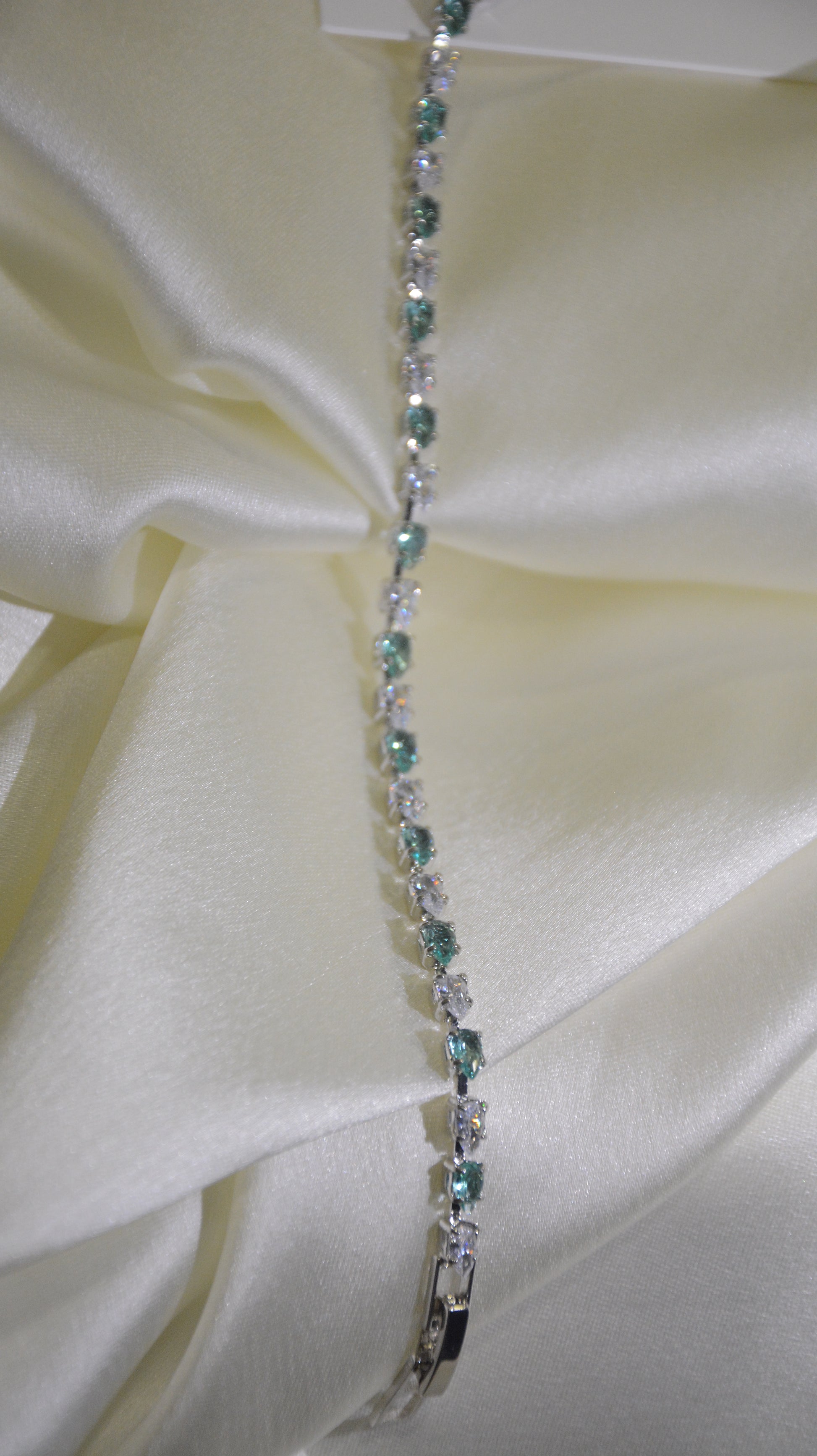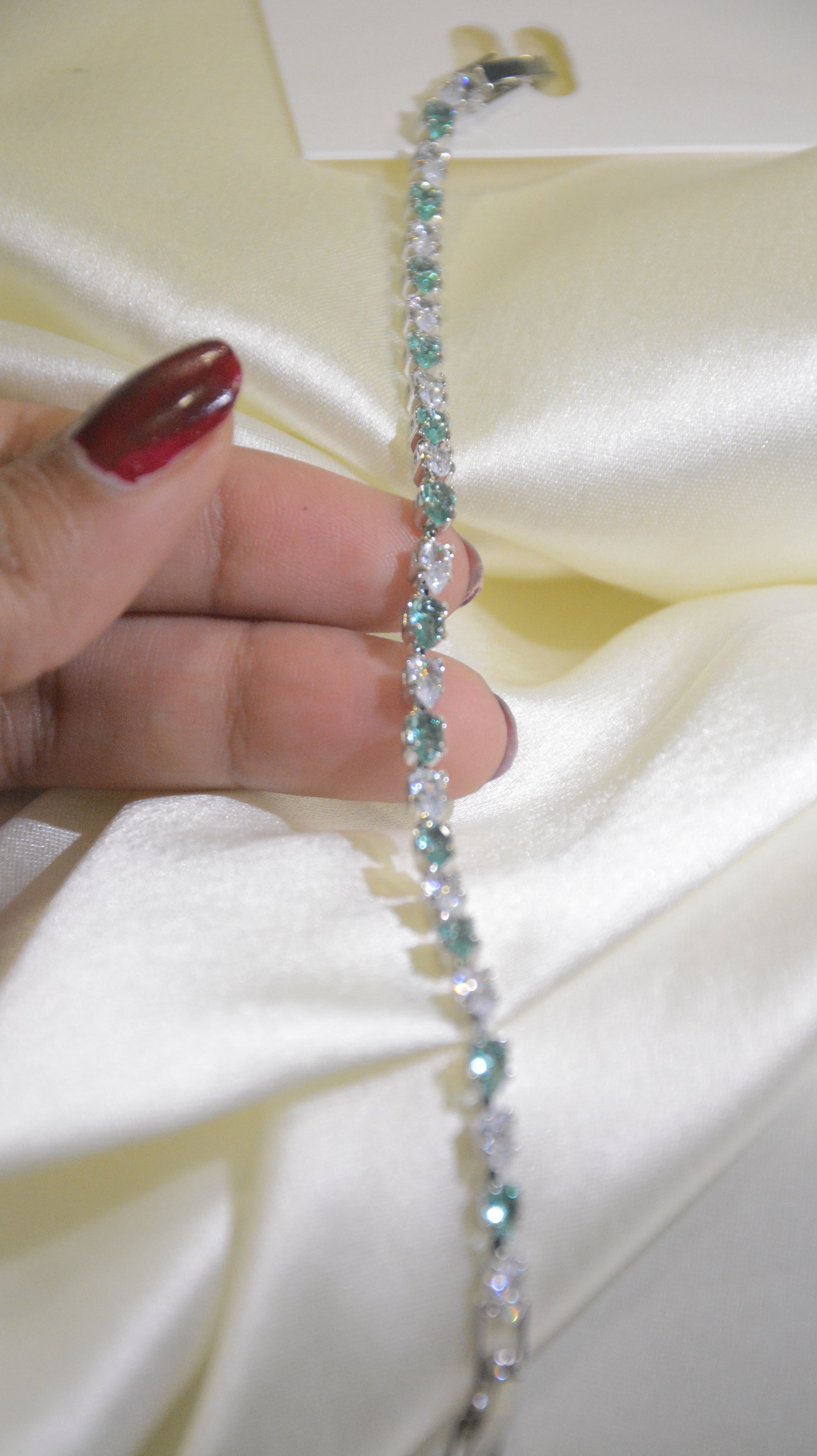 This Emerald 2 coloured water drop bracelet is the perfect way to add a touch of class to any attire. Its elegant design and two tone colour will be sure to capture attention at any event. Treat yourself or make this bracelet a thoughtful gift for someone special.