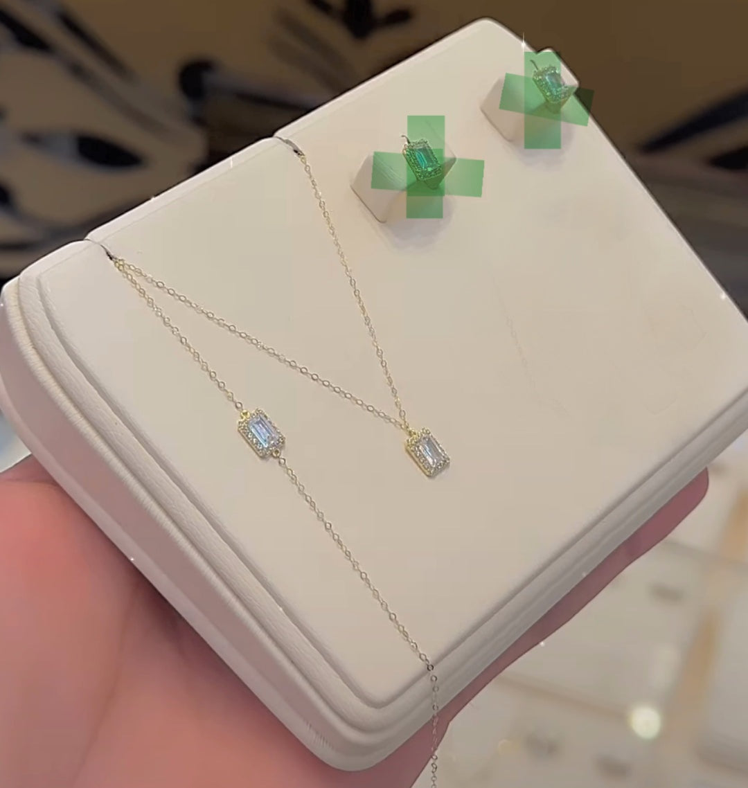 "Enhance your royal look with our White Ice Princess Set. This stunning jewelry set includes a necklace adorned with rectangle stones, adding a touch of elegance and sophistication to any outfit. Elevate your style and feel like a true princess wearing this exquisite set."